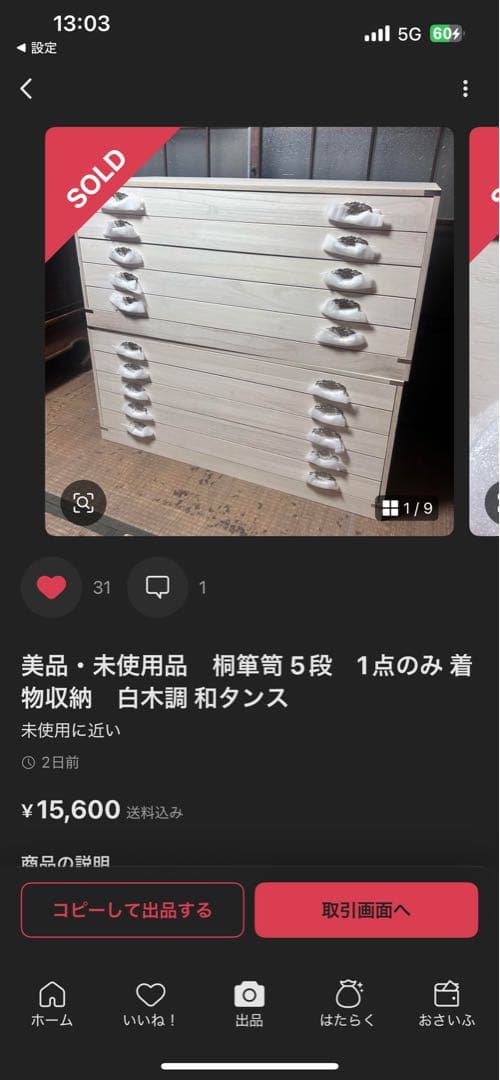 加茂桐たんす★胴厚帯箪笥★\r\r質問や取引については、13時~18時(火曜日は対応不可)で対応させていただきます。\r※土曜日、日曜日につきましても対応が出来ない場合があります。\r\r発送は、「梱包・発送たのメル便」で行います。\rご購入後にご希望の配達日をご入力いただく必要があります。\rご入力なき場合、発送が出来ませんので、ご留意ください。\r※沖縄県および離島への発送は出来ません。\r\r\r加茂桐たんすの10段の帯箪笥です。\r鍵付き(1個付属)\r使用によるスレや傷、よごれはありますが\r実用に問題のあるような重篤なダメージは見受けられません。\r\r\r■サイズ\r幅 約81㎝\r奥行 約45.5㎝\r高さ 約120㎝\r\r座面\r幅 約65㎝\r奥行 約38㎝\r高さ 約10.5㎝\r\r\r506021747C247| カテゴリー: | ホビー・楽器・アート>>>家具>>>箪笥 |